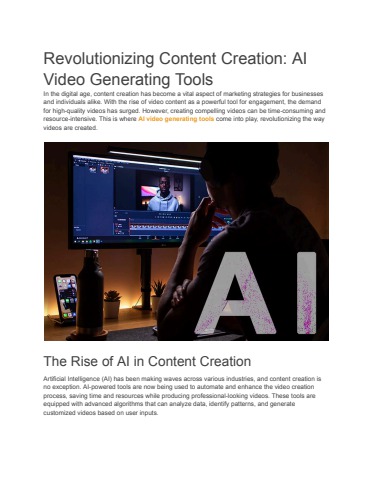 Revolutionizing Content Creation: AI Video Generating Tools