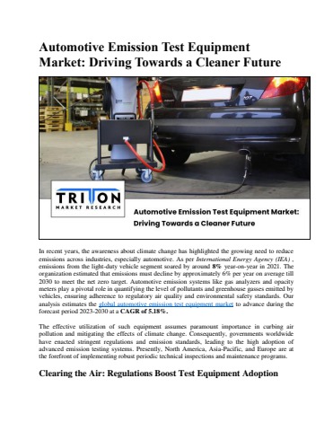 Automotive Emission Test Equipment Market: Driving Towards a Cleaner Future