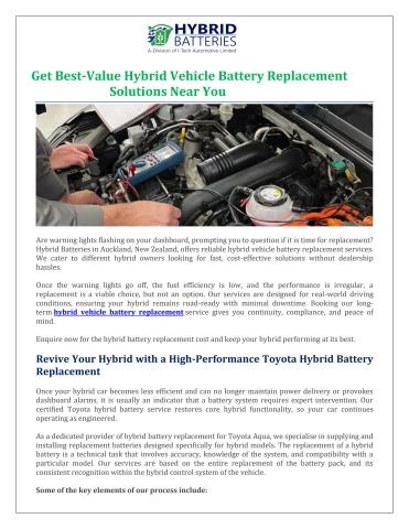Are warning lights flashing on your dashboard, prompting you to question if it is time for replacement? Hybrid Batteries in Auckland, New Zealand, offers reliable hybrid vehicle battery replacement services. We cater to different hybrid owners looking for fast, cost-effective solutions without dealership hassles.