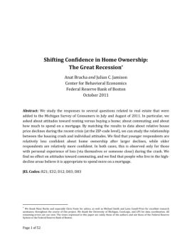 Page 1 of 52 Shifting Confidence in Home Ownership: The Great Recession* Anat Bracha and Julian C. Jamison Center for Behavioral Economics