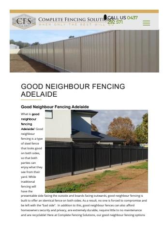 In addition to this, good neighbour fences can also afford homeowners security and privacy, are extremely durable, require little to no maintenance and are recyclable! Here at Complete Fencing Solutions, our good neighbour fencing options come in a range of colour and are made right here in Adelaide. Add a touch of sophistication and colour to your outdoor area today with our good neighbour fencing Adelaide.