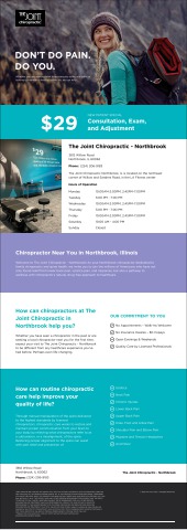 Welcome to The Joint Chiropractic - Northbrook! As your Northbrook chiropractor dedicated to family chiropractic and spine health, we invite you to join the millions of Americans who have not only found relief from lower back pain, sciatica pain, and migraines, but also a pathway to wellness with chiropractic's natural, drug-free approach to healthcare.