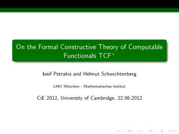 On the Formal Constructive Theory of Computable Functionals TCF+ Iosif Petrakis and Helmut Schwichtenberg LMU Munchen - Mathematisches Institut