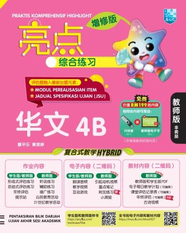 Total pages: 104 - 形成式评估练习同时可作为随堂巩固练习使用。- 总结式评估练习和一份年终评估是根据UASA格式编写,融入Modul Perealisasian Item和Jadual Spesifikasi Ujian (JSU) 最新出题元素。- 答案以颜色印在作业的作答空间里,方便参考。- 提供额外不同功能的电子内容供教师使用,以满足与时俱进的学习方式。- 提供“教师专享内容”(第E1-E16页)及教材内容(第P8页)供教师使用,以协助教师进行教学。- 提供“提示站”小窗口,大部分是UASA习题的引导。;- 在Sasbadi Xtra网站提供教师版电子书。- 涵盖高层次思维技能 (KBAT) 和 i-Think 思维导图。