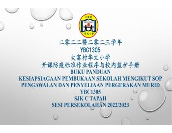 BUKU PANDUAN KESIAPSIAGAAN PEMBUKAAN SEKOLAH MENGIKUT SOP & PENGAWALAN DAN PENYELIAAN PERGERAKAN MURID