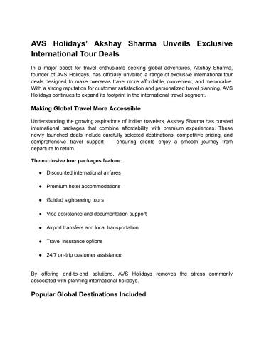Akshay Sharma Avs Holidays Guide To Promote