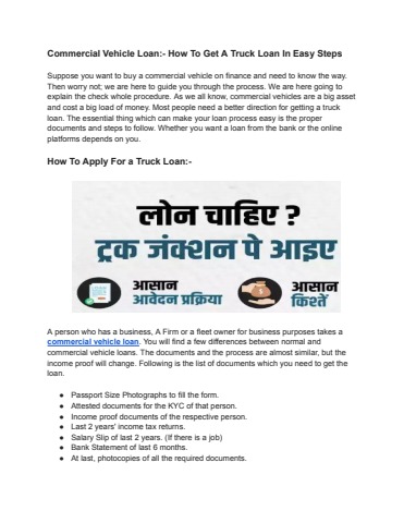 Commercial Vehicle Loan:- How To Get A Truck Loan In Easy Steps