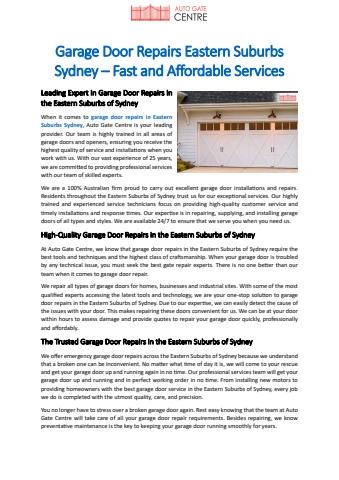 Garage Door Repairs Eastern Suburbs Sydney – Fast and Affordable Services