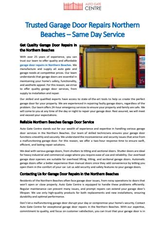 Trusted Garage Door Repairs Northern Beaches – Same Day Service