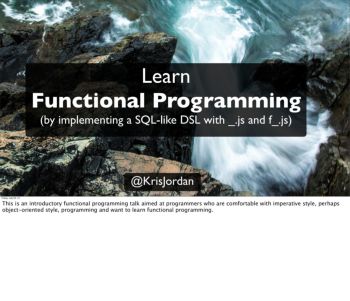 @KrisJordan Learn Functional Programming (by implementing a SQL-like DSL with _.js and f_.js) Friday, July 20, 12 This is an introductory functional programming talk ...