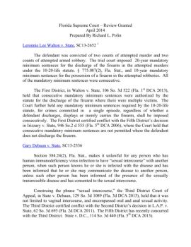 Florida Supreme Court – Review Granted April 2014 Prepared By Richard L. Polin Leronnie Lee Walton v. State, SC13-2652 1 The defendant was convicted of two counts ...