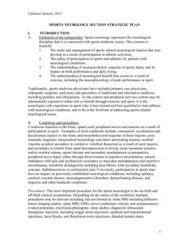 Updated January 2013 1 SPORTS NEUROLOGY SECTION STRATEGIC PLAN I. INTRODUCTION A. Definition of the subspecialty. Sports neurology represents the neurological