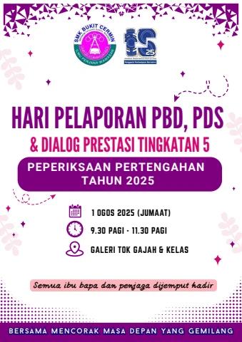 HARI PELAPORAN PENTAKSIRAN BILIK DARJAH (PBD), PEPERIKSAAN DALAMAN SEKOLAH(PDS) DAN DIALOG PRESTASI IBU BAPA TINGKATAN 5 UNTUK PEPERIKSAAN PERTENGAHAN TAHUN 2025