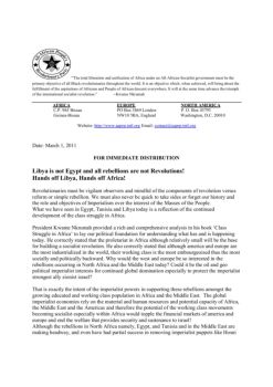 of the movements throughout Africa and the world. Libya has been on course towards a socialist state through the Jamahiriya. Egypt continued to exploit its masses ...