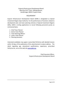 Gujarat Infrastructure Development Board . Block No.18, 8. th. floor, Udhyog Bhavan, Gandhinagar-382011 Gujarat State. REQUIREMENT . Gujarat Infrastructure ...