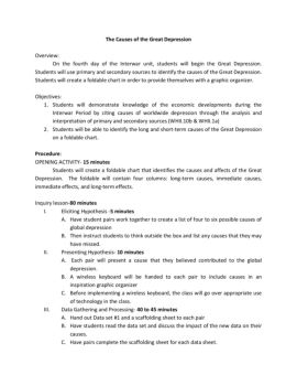 The Causes of the Great Depression Overview: On the fourth day of the Interwar unit, students will begin the Great Depression. Students will use primary and ...