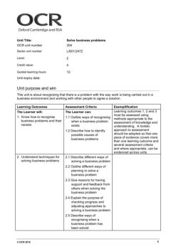 2 © OCR 2010 3. Know how to review approaches and solutions to business problems 3.1 Outline ways of reviewing approaches to solving business problems