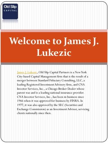 James J. Lukezic is a distinguished financial professional with over two decades of background covering investment management, retirement consulting, compliance with fiduciary standards.
