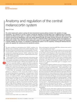 REVIEW NATURE NEUROSCIENCE | VOLUME 8 | NUMBER 5 MAY 2005 571 FEEDING REGULATION AND OBESITY Anatomy and regulation of the central melanocortin system