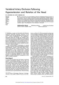 Vertebral Artery Occlusion Following Hyperextension and Rotation of th Heae d BY S. OKAWARA, M.D., AN DD. NIBBELINK M.D, . Abstract: Vertebral Artery