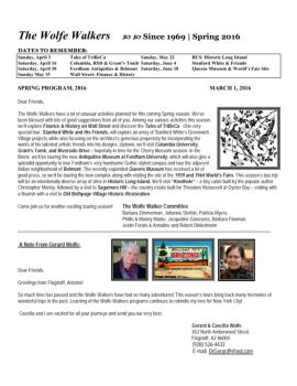 2 WOLFE WALKERS: SPRING 2016 TOUR REGISTRATION Please make your check payable to JOHANNA STERBIN and mail your coupon and check to: THE WOLFE WALKERS