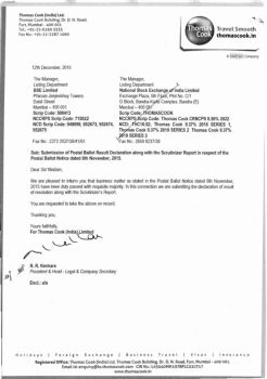 Thomas Cool< (India) Ltd. Thomas Cool< Building, Dr. 0. N. Road, Fort, Mumbai -400 001 Tel.: +91-22-6160 3333 FaH No.: +91-22-2287 1069 12th December, 2015