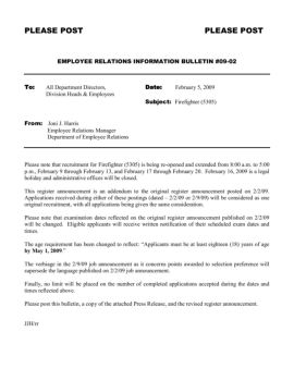 PLEASE POST PLEASE POST EMPLOYEE RELATIONS INFORMATION BULLETIN #09-02 To: All Department Directors, Date: February 5, 2009