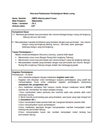 Rencana Pelaksanaan Pembelajaran KSE Moda Luring