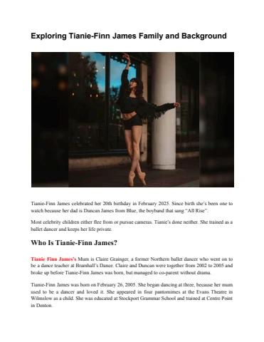 Inside the life of Tianie-Finn James today, the young dancer continues to live privately after graduating from the prestigious Royal Ballet School in 2024. Despite being the daughter of Blue singer Duncan James and former Northern Ballet dancer Claire Grainger, Tianie-Finn has chosen a life away from fame, focusing on her passion for ballet. Her social media remains mostly private, reflecting her desire to maintain balance and privacy. While her exact professional pursuits aren’t public, Tianie-Finn is admired for her dedication, grace, and grounded nature—traits that have defined her journey from a talented child performer to a disciplined young artist.