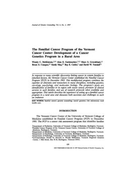 Journal of Genetic Counseling, Vol. 6, No. 2, 1997 The Familial Cancer Program of the Vermont Cancer Center: Development of a Cancer Genetics Program in a Rural Area