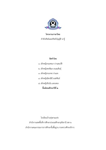 โครงงานภาษาไทย คำทับศัพท์ และศัพท์บัญญัติ ม.2 โรงเรียนบ้านทุ่งสามเเท่ง