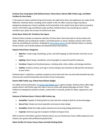 Enhance Your Living Space with DeHome Decor - Home Decor, Electric Milk Frother Jugs, and Water Purifiers for Your Home