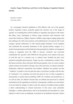 1 Gaucho, Tango, Primitivism, and Power in the Shaping of Argentine National Identity Eduardo P. Archetti University of Oslo In a newspaper chronicle published in ...