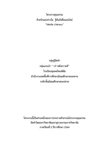 ม._017 โครงงานคุณธรรม ด้วยรักและห่วงใยรู้ทันภัยสื่อออนไลน์ รร.ชุมพลโพนพิสัย - สกาวเดือน กางทอง