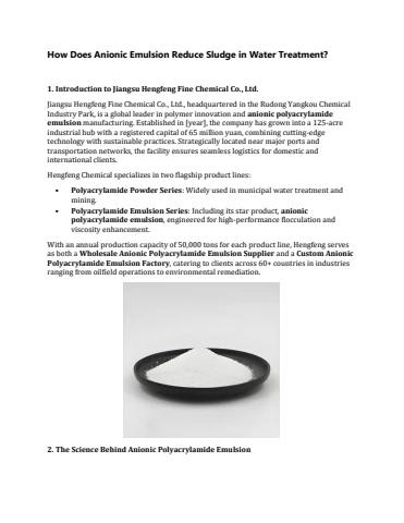 How Does Anionic Emulsion Reduce Sludge in Water Treatment