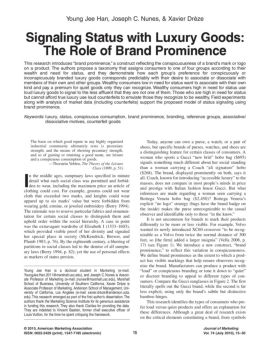 Young Jee Han, Joseph C. Nunes, & Xavier Drèze SignalingStatuswithLuxuryGoods: TheRoleofBrandProminence ... Wecallthethirdclassofconsumers“poseurs,”fromthe