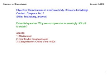 Expansion and Crisis.notebook 1 November 20, 2012 Objective: Demonstrate an extensive body of historic knowledge Content: Chapters 1416