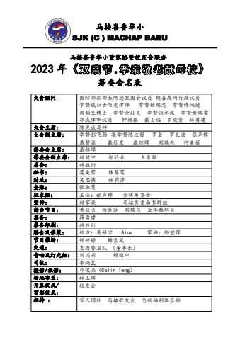 马接峇鲁华小董家协暨校友会联办 2023年《双亲节.孝亲敬老献母校》
