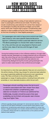 People frequently inquire about lufthansa airlines seat selection policy, which is intended to provide customers the flexibility to select their seats in accordance with their needs and preferences. For travelers traveling with this reliable airline, Lufthansa's dedication to offering a variety of options makes for a more pleasurable and tailored experience, whether booking online, using the mobile app, or choosing seats at the airport. Lufthansa is aware that having a choice in where to sit greatly enhances customer happiness.