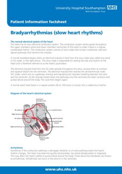 Patient information factsheet ... Bradycardia is a term that describes a number of different conditions in which the heart beats at an unusually slow rate.