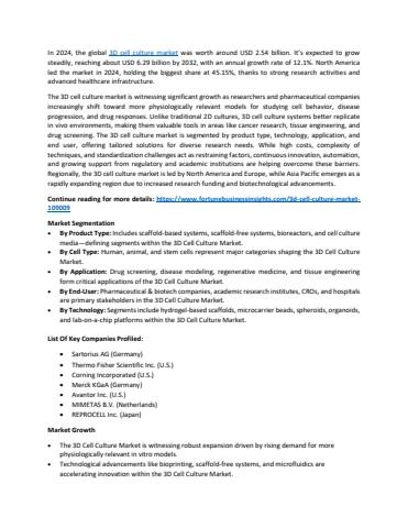 3D Cell Culture Market Value Chain and Supply Demand Overview 2032