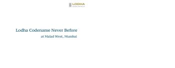 Lodha Codename Never Before Malad Lodha Codename Never Before is a new residential project in Malad West Mumbai – by Lodha Group The project offers Fully AC 2 & 3 BHK Premium Residences.