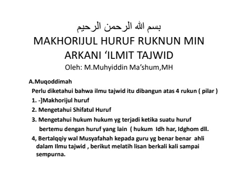 Metode Pembelajaran Makhorijul Huruf dan shifatnya KH. MUHYIDDIN MA'SHUM