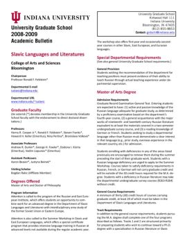 University Graduate School 2008-2009 Academic Bulletin Slavic Languages and Literatures University Graduate School Kirkwood Hall 111 Indiana University