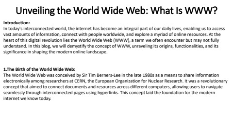In today's interconnected world, the internet has become an integral part of our daily lives, enabling us to access vast amounts of information:Get more information please click here: https://www.obiyaninfotech.com/what-is-www-and-what-is-the-full-form-of-www-in-computer/