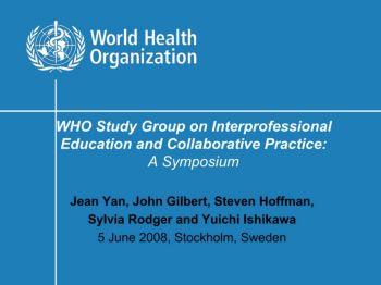WHO Study Group on Interprofessional Education and Collaborative Practice: A Symposium Jean Yan, John Gilbert, Steven Hoffman, Sylvia Rodger and Yuichi Ishikawa