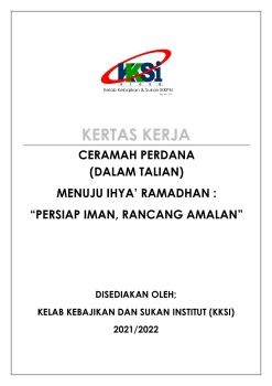 Kertas Kerja Ceramah Menuju Ihya' Ramadhan 11 Mac (Jumaat)-PDF