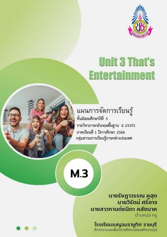 แผนการจัดการเรียนรู้รายวิชาภาษาอังกฤษพื้นฐาน อ 23101 ชั้นมัธยมศึกษาปีที่ 3<br>ภาคเรียนที่ 1 ปีการศึกษา 2566<br>Unit 3 That's Entertainment!