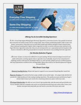 http://www.iloveecigs.com/ | Logic e-cigs look, feels and tastes like a traditional cigarette without any of the burning, ash, smell, second hand smoke, tar or tobacco. These electronic cigarettes replicate the sensation of smoking conventional cigarettes by featuring Real Cigarette-Sensation Technology.