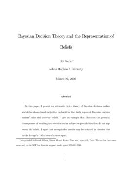 Bayesian Decision Theory and the Representation of Beliefs Edi Karni∗ Johns Hopkins University March 29, 2006 Abstract In this paper, I present an axiomatic choice ...